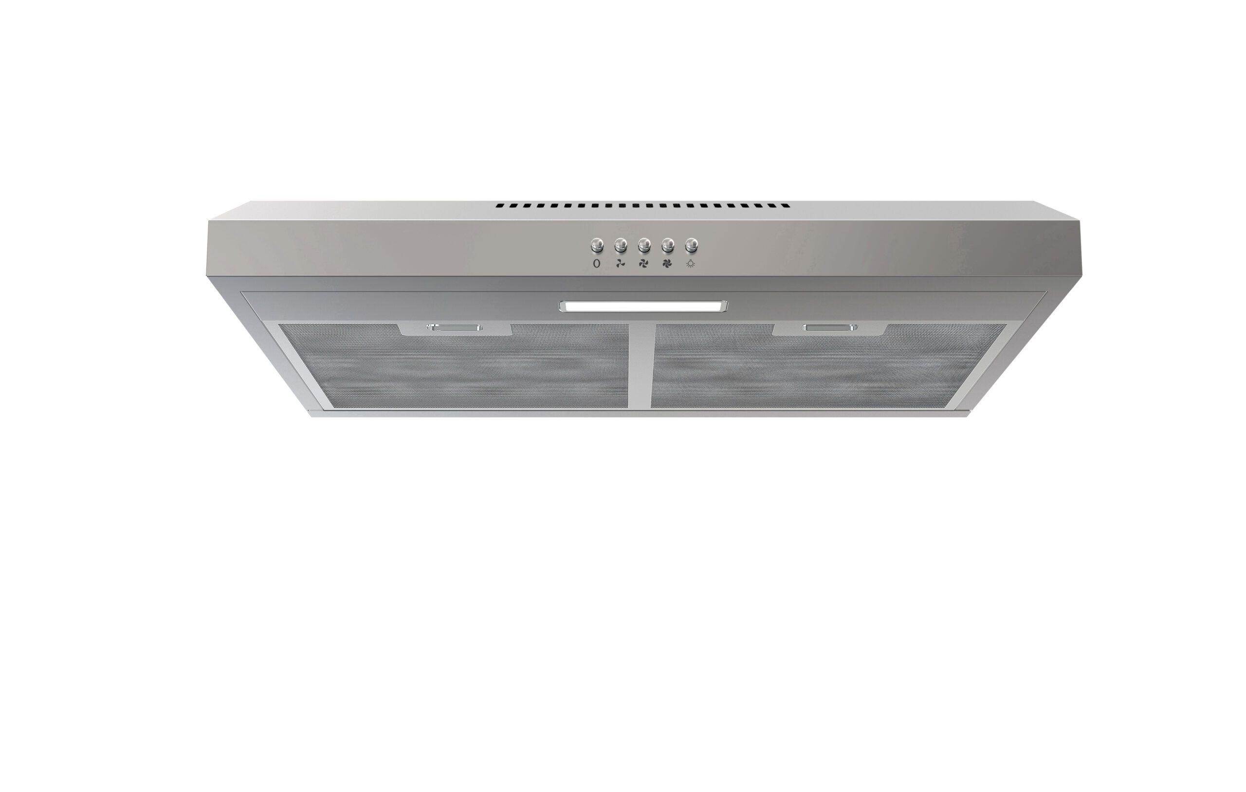 Les commandes mécaniques permettent un contrôle intuitif, tandis qu’une lampe LED assurent un éclairage uniforme, proche de la lumière naturelle. Cette hotte est équipée d’un filtre à graisse métallique amovible, et peut fonctionner en mode évacuation ou recyclage selon vos préférences.
