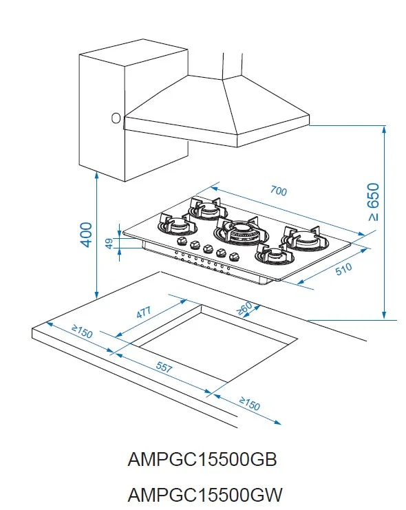 Enfin, cette table étant encastrable, veillez à respecter les dimensions de niche recommandées : L.557x P.477 mm minimum.