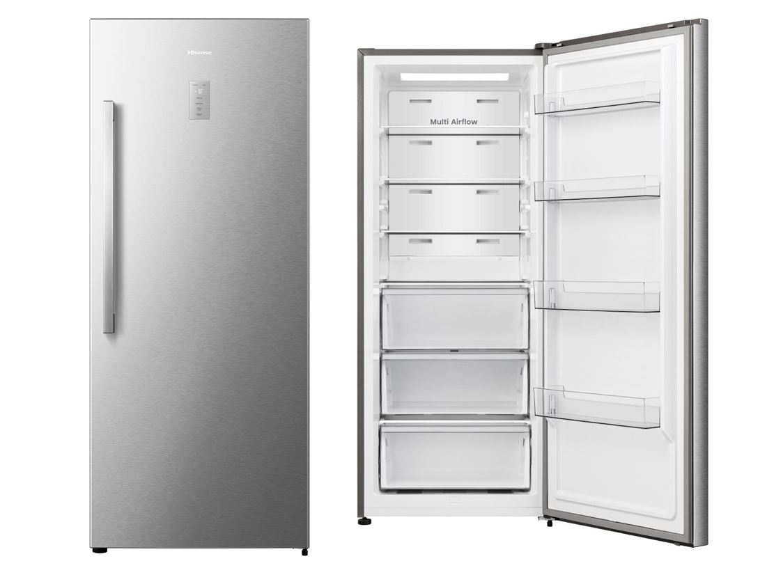 Le FT500N4AIE d’Hisense est un congélateur armoire spacieux de 385 litres qui peut s’utiliser comme réfrigérateur armoire en l’espace de quelques heures. Il associe praticité, fiabilité et économie d’énergie. Doté de la technologie TotalNoFrost, il vous dispense définitivement des corvées de dégivrage. Son design métal brillant et sobre s’harmonise avec toutes les cuisines modernes.