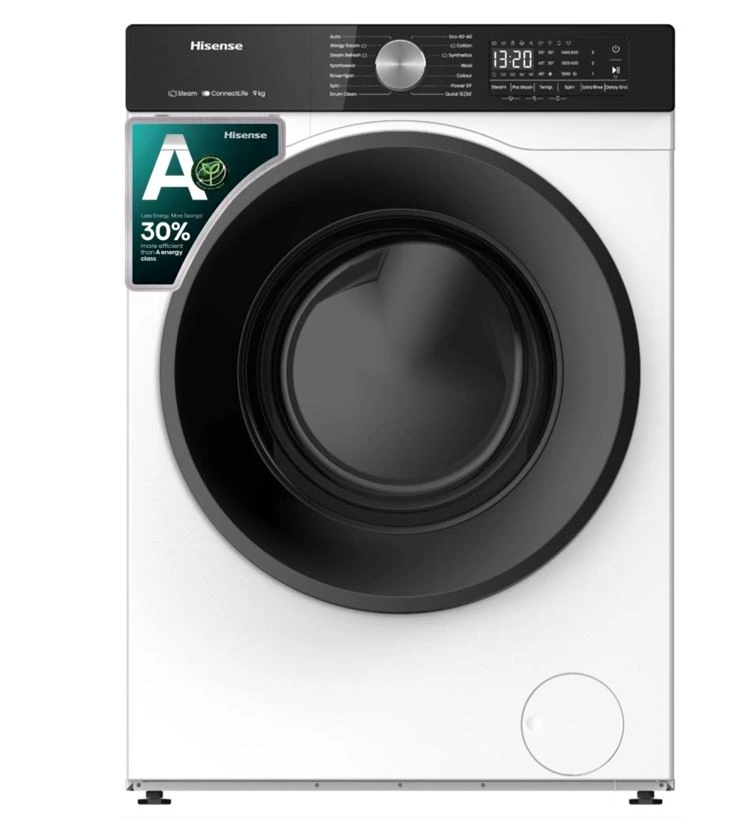 HISENSE WF3S9043BW3 : Lavage haute capacité et technologie vapeur