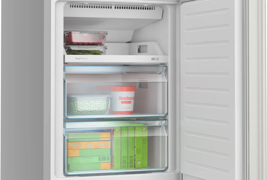 Les clayettes en verre de sécurité, simples à nettoyer, assurent une hygiène parfaite et un froid mieux réparti. De plus, le bac MultiBox avec fond ondulé protège fruits et légumes contre l’humidité stagnante. L’éclairage LED écoénergétique offre une visibilité parfaite et sans reflets, tout en étant durable.