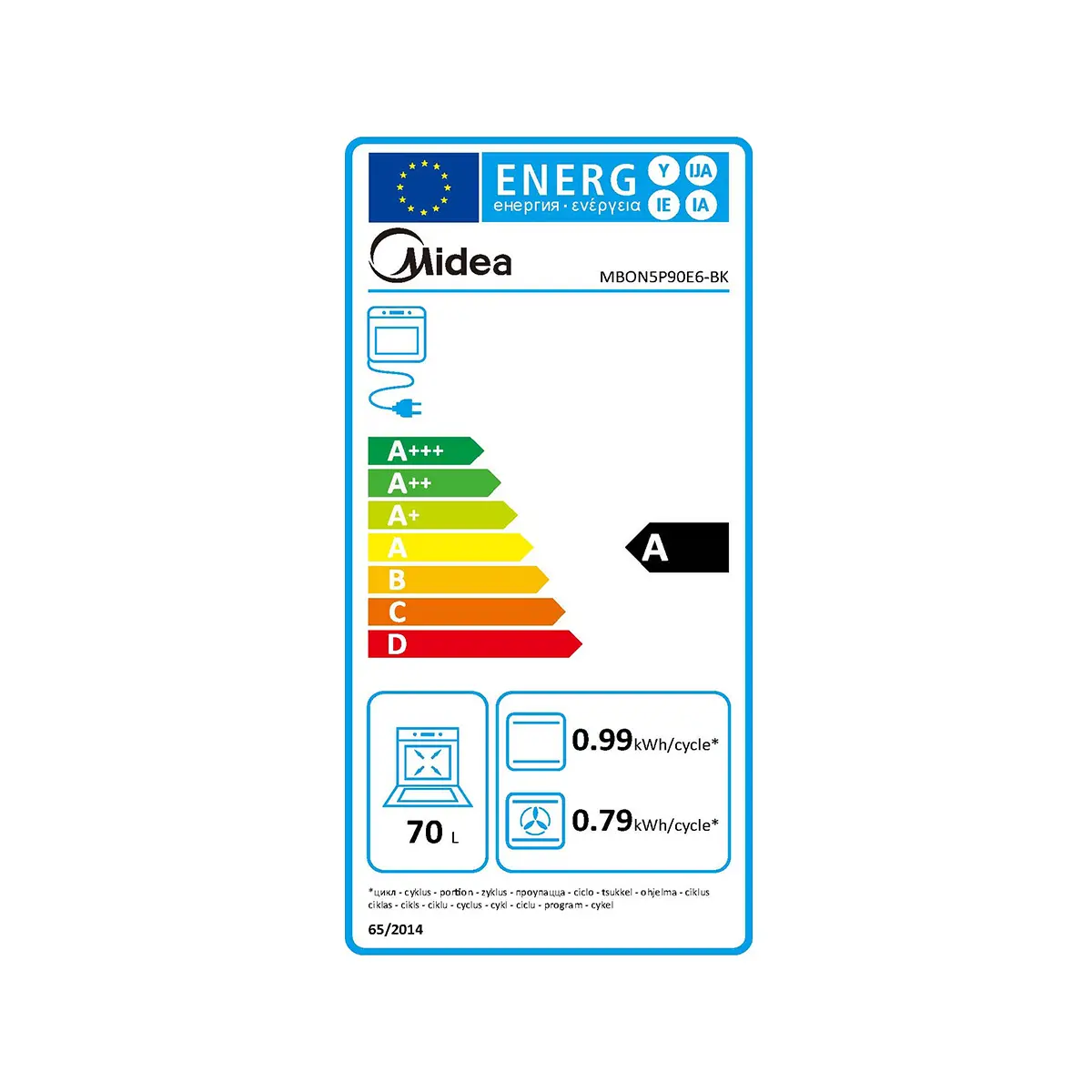 MIDEA – MBON5P90E6BK – Four encastrable – 70L