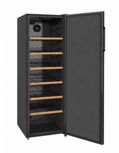 Cette cave de vieillissement peut accueillir jusqu’à 168 bouteilles de 75 cl type Bordeaux. Elle offre une plage de température réglable de 5 °C à 20 °C, assurant une conservation optimale selon vos besoins. Son thermostat électronique externe digitale facilite un contrôle simple et précis de l’humidité ainsi que de la température.