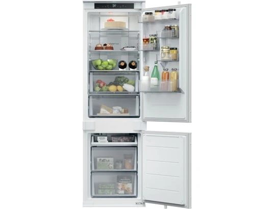 Ce combiné intégrable propose un volume utile total de 251 litres, idéalement réparti entre le réfrigérateur (178 L) et le congélateur (73 L). Grâce à ses dimensions standards (177,2 x 54 x 55 cm), il s’adapte facilement à toutes les cuisines encastrables avec glissières.