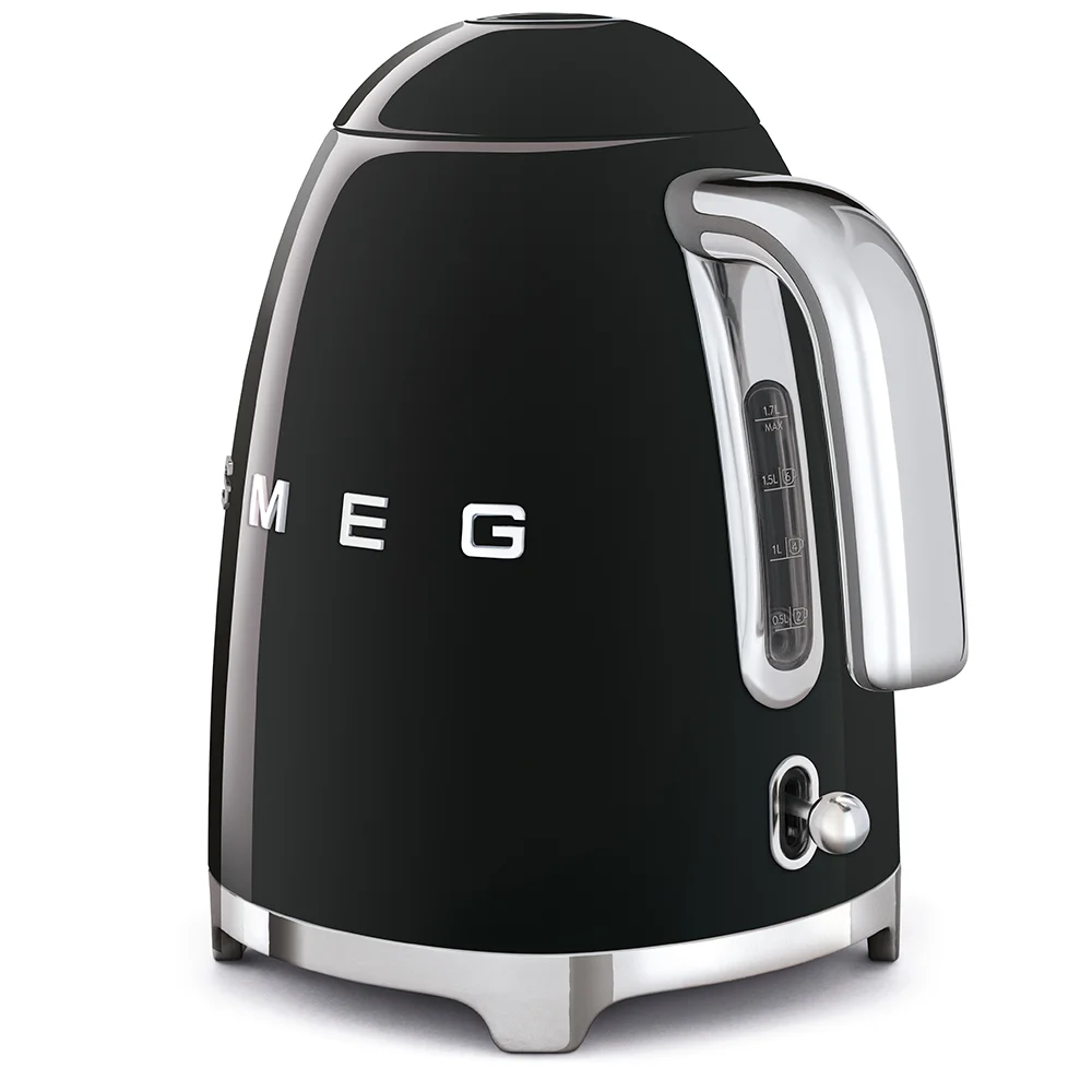 La bouilloire SMEG, d’un Noir brillant, attire en effet immédiatement le regard. Elle offre une grande capacité de 1,7 litre, car elle est largement suffisante pour préparer jusqu’à 7 tasses de thé ou de café sans encombrer l’espace de votre plan de travail.