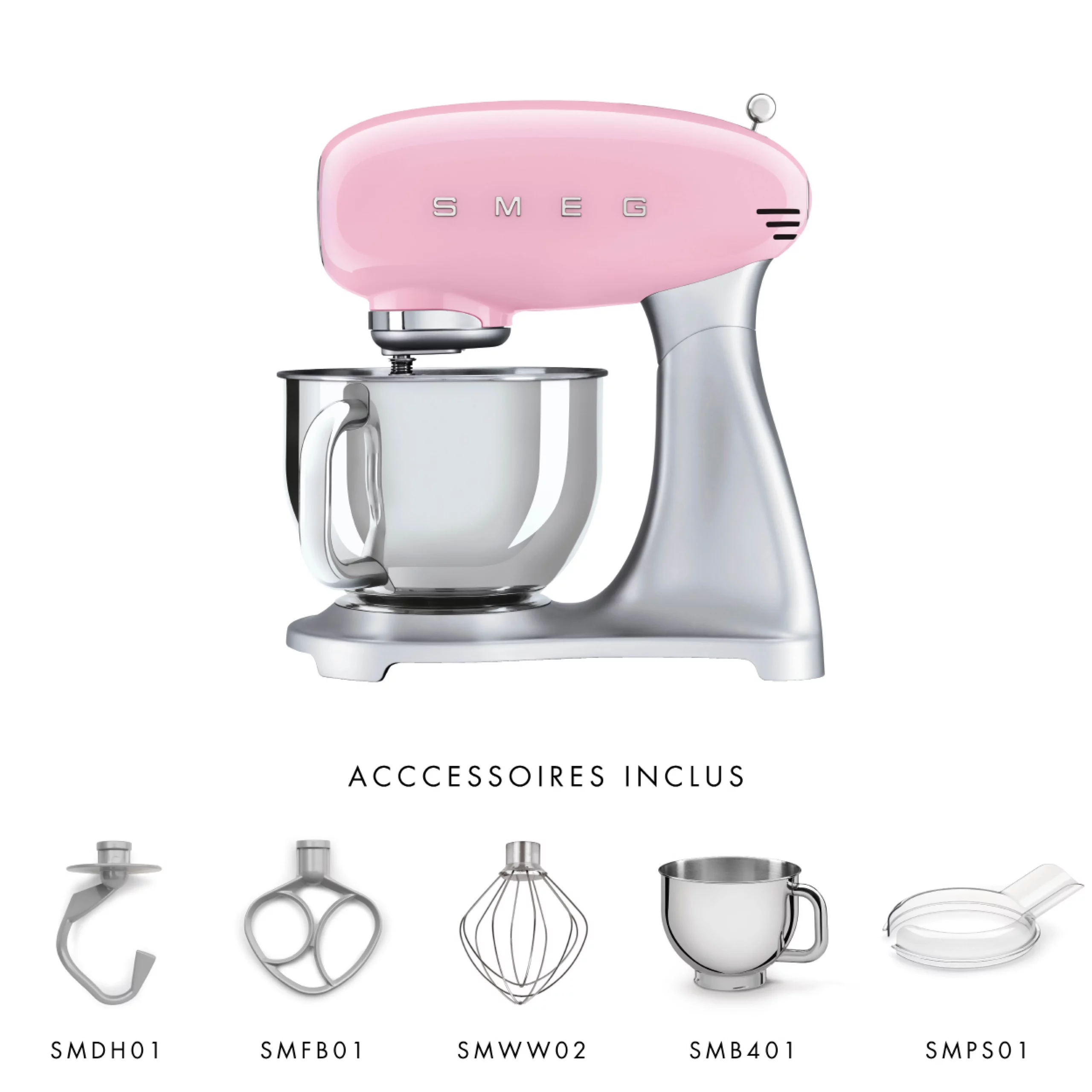 Le robot pâtissier SMEG SMF02PKEU, c’est la rencontre parfaite entre design vintage, robustesse et performance. Un allié indispensable pour sublimer vos créations maison avec style.