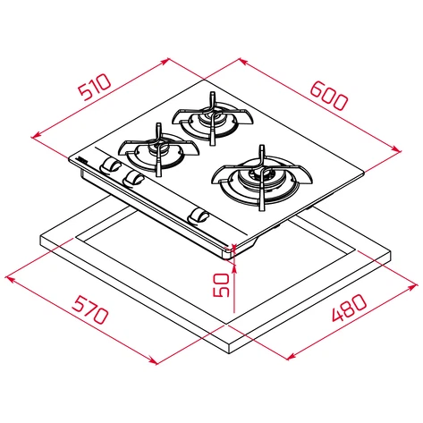 Tout d’abord, cette table dispose de trois foyers à gaz soigneusement répartis : un rapide de 4000 W, un semi-rapides de 4000 W, et un auxiliaire de 4000 W. Chaque brûleur, circulaire, assure une répartition homogène de la chaleur. Ensuite, les grilles en fonte individuelles assurent une excellente stabilité des ustensiles.